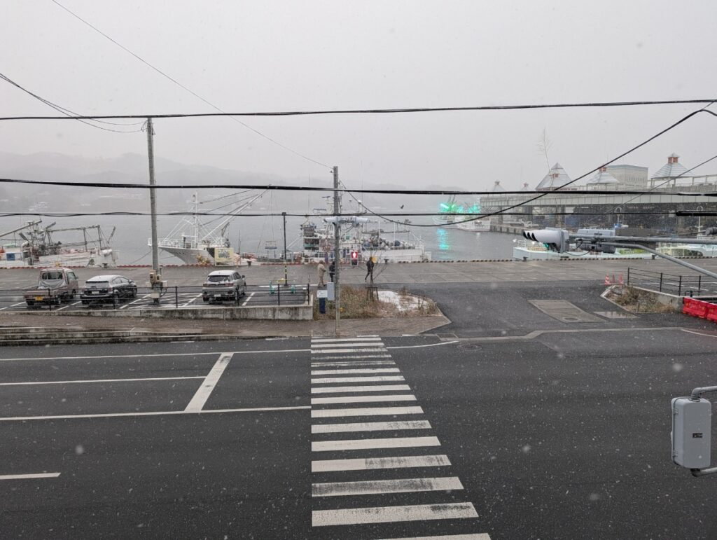 初雪まう気仙沼、長距離運転心配です・・・・