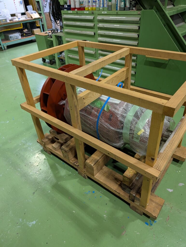 弊社で素子交換した発電機ローターを梱包したので