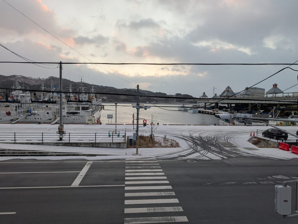 今日の気仙沼は昨晩からの雪もあたりうっすらと雪化粧しております。