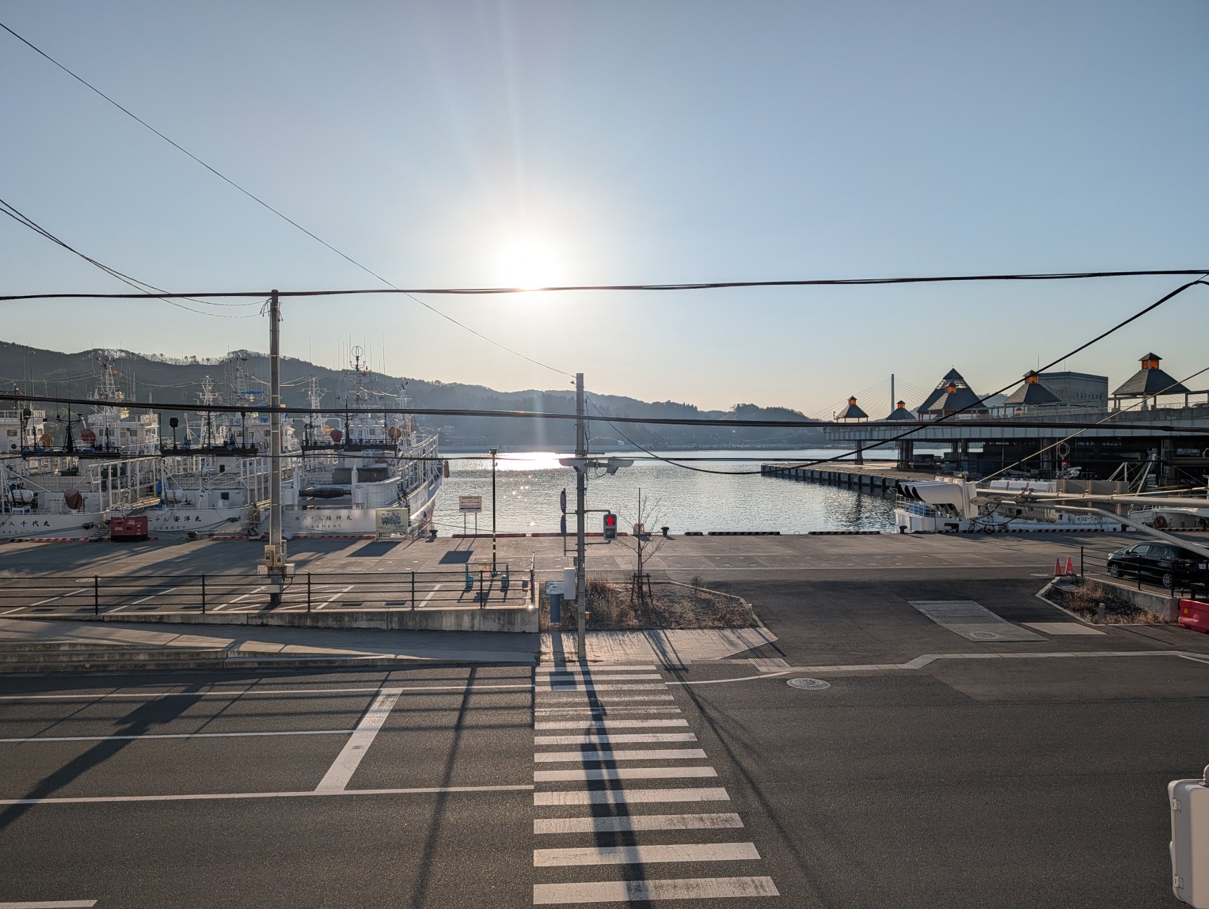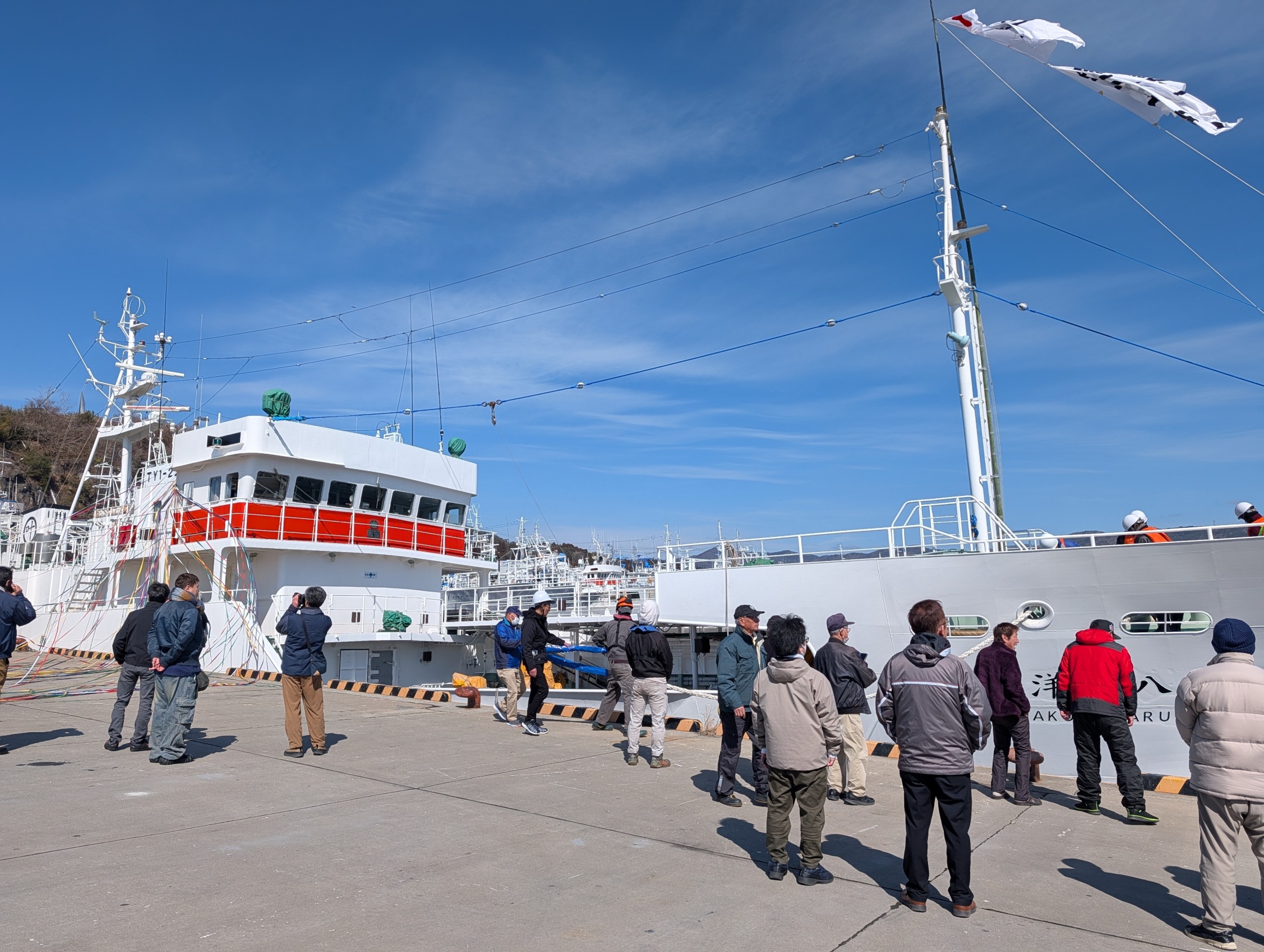 朝に7勝栄丸様が無事商港岸壁に入港され、船頭様方がすごいいい笑顔にて